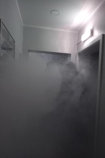Das ist ein toller Effekt, um mit den jugendlichen Bewohnern und Bewohnerinnen unter realistischen Bedingungen üben zu können, wie man aus einem verqualmten Haus kommt. Das nämlich ist gar nicht so einfach, selbst dann, wenn man das Haus eigentlich gut kennt… Deshalb ist es umso wichtiger, es zu üben und alle für den Ernstfall zu sensibilisieren. Und nicht nur, dass alles gut geklappt hat: Jetzt weiß jeder, dass auch die Feuermelder richtig lauten Alarm machen können.