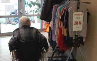 Die Bewohnerinnen und Bewohner stöbern nach Herzenslust und finden das eine oder andere wunderschöne Kleidungsstück. Dann geht es ans Umziehen und es folgt eine grandiose Modenschau mit den Top-Models der Altenhilfe. Da wird es gar nicht einfach, zu entscheiden, welches Teil erworben wird.