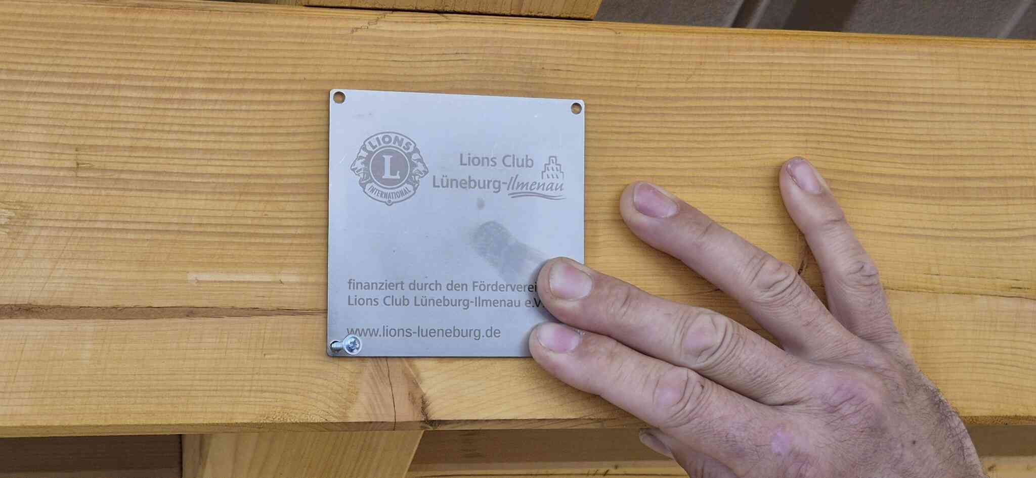 Seit vergangenen Freitag ziert nun die Plakette des Lions Club die, dafür auch neu errichtete, überdachte Spielerbank.