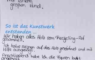 Um sie zu fertigen, hat die junge Künstlerin einfach altes Holz vom Recyclinghof gesaamelt, Skizzen auf die Hölzer gemalt, alles ausgesägt und es am Ende