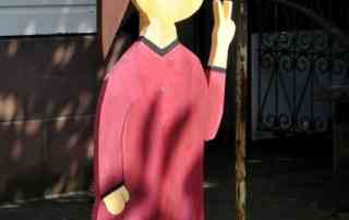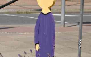 bunt bemalt. Auch diese Figuren sind zur Zeit auf der Kunstmeile in der Stadt ausgestellt zu betrachten. Ihr Standort ist unter den Bäumen in der Kurzen Straße.