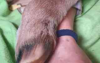 Es wird nun ganz liebevoll von unseren Kindern mit der Flasche gefüttert und aufgezogen. Und wenn man diese Bilder sieht, erkennt man sofort – da spendet nicht nur der Hund Wärme.