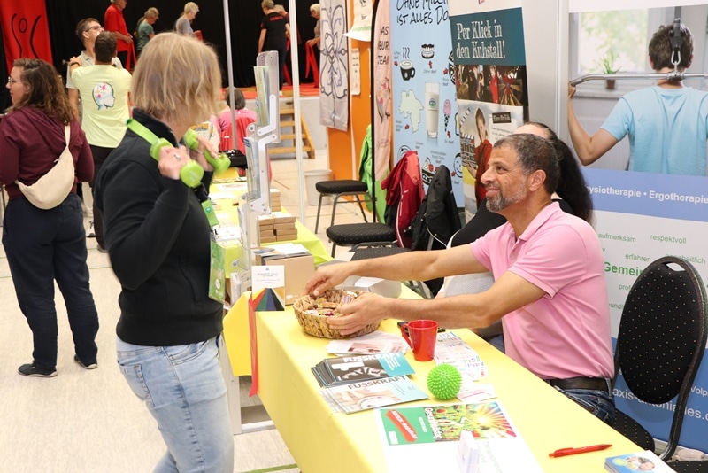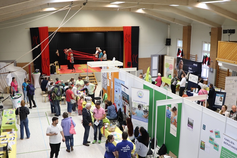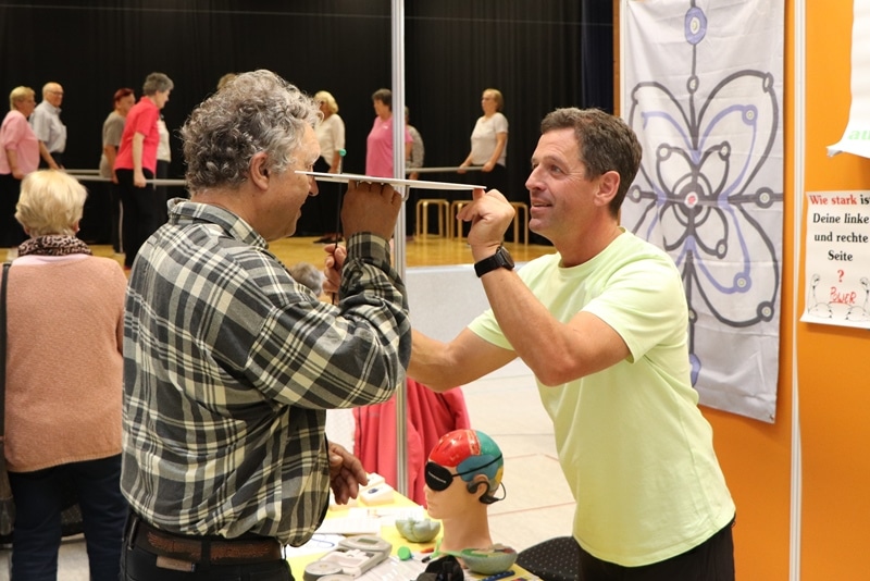 In der zur Messehalle umgebauten Turnhalle präsentierten 18 Aussteller ihre Angebote, während auf der Bühne und der gesamten Anlage 31 Mitmachaktionen und 7 spannende Fachvorträge für Inspiration sorgten. Expertinnen und Experten informierten im Mehrzweckraum zu Themen wie Osteoporose, Fuß- und Rückengesundheit, das Erkennen von Depressionen Prävention bei Wirbelsäulenerkrankungen oder digitaler Therapiebegleitung. Die Gäste nutzten die Gelegenheit, direkt mit Fachleuten ins Gespräch zu kommen, neue Impulse für den Alltag zu gewinnen und selbst aktiv zu werden – von Yoga und Pilates über Atemübungen bis hin zu Hot-Iron-Fitness.
