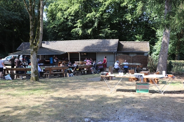 Bei wolkenlosem Himmel und sengender Hitze fand das Sommerfest der ambulanten Hilfen wie bereits im Jahr zuvor am heißesten Tag des Jahres statt. Da bot sich der idyllisch gelegene Grillplatz Bollensen neben einem Bachlauf und mit Schatten spendendem Pavillon sowie überdachtem Vorbau als traditioneller Veranstaltungsort bestens an. Für die Klienten und Klientinnen, doch auch das Team der ambulanten Hilfen Uslar gab es an diesem Nachmittag viel Raum für Begegnung. Zwischen herzhaften und süßen Genüssen, vielen selbstgemachten Leckereien aus der Gemeinschaft und lebendigen Gesprächen entstand eine Stimmung, die das Miteinander in den Mittelpunkt stellte.